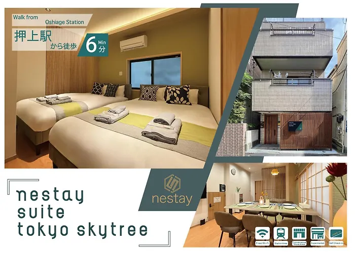 Die Nestay Suite Tokyo Skytree liegt im Stadtteil Sumida, nur 25 Minuten Fußweg vom Schrein von Asakusa entfernt. WLAN steht den Gästen für ihre geschäftlichen oder privaten Zwecke zur Verfügung.